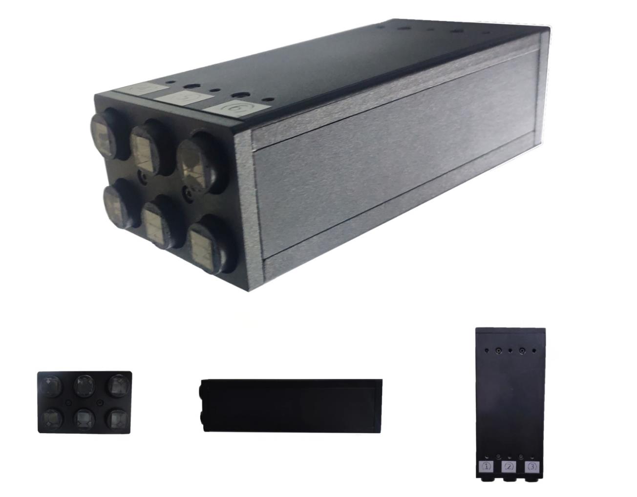 总电源开关带指示灯 系统开关 DCS 自动剂量控制接口连接器 UVA+B&UVA 探测器 电源随附客户指定的线缆。通用电源工作电压为12VDC 12VDC直流电源适配器,最大2.5A 推荐 25 °C,5 – 50 °C 范围 18x24.5x8.5cm 1.2千克 |